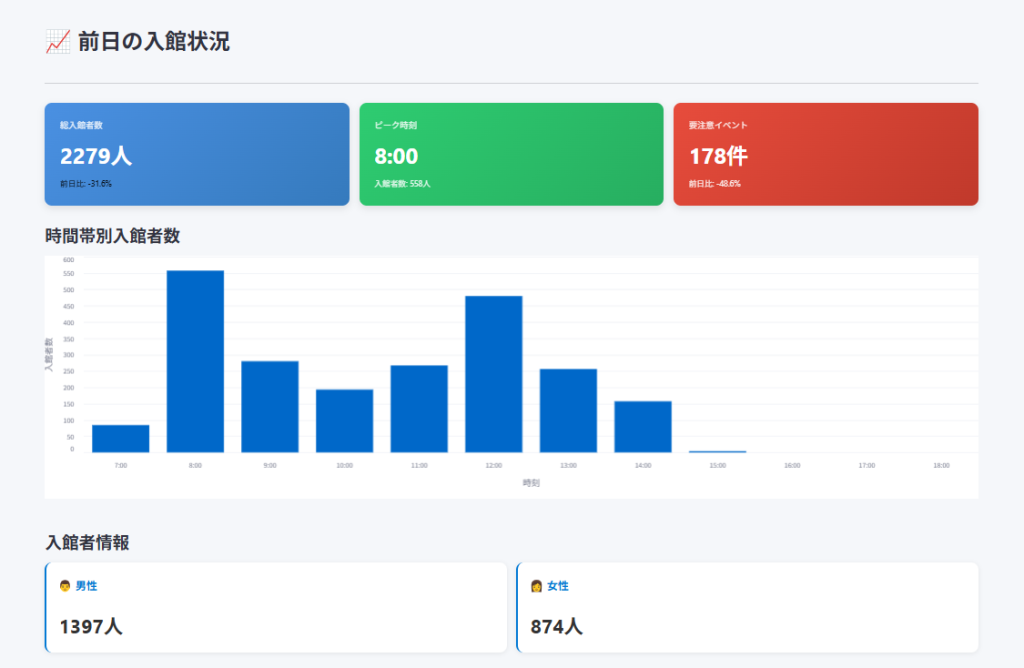 Streamlitを活用したWebアプリケーションにより、前日のエントランスの状況を可視化できるダッシュボードを構築しました。