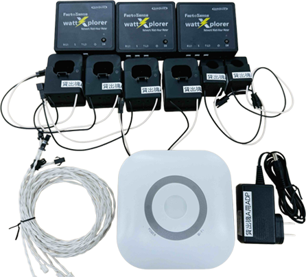 - wattXplorer 三相3線250A用 x2台、三相3線100A用 x1台が含まれています (単相回路にも対応可能)
