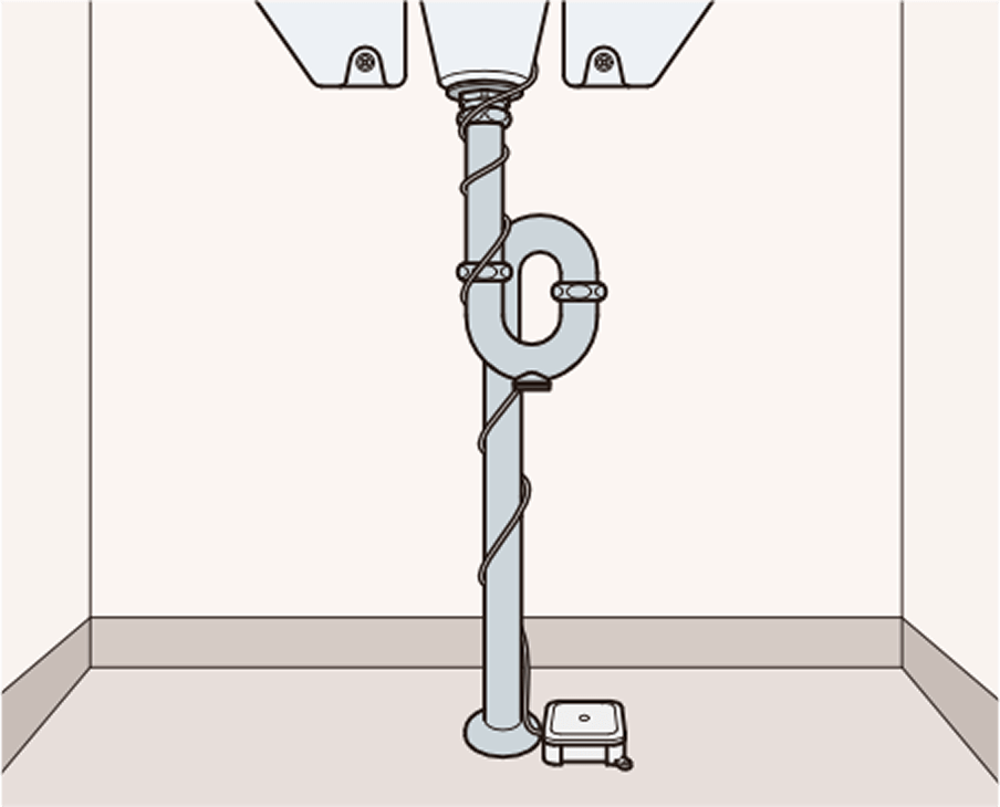 - 漏水が予想される箇所にデバイスから伸びた「漏水検知帯」を置くだけ