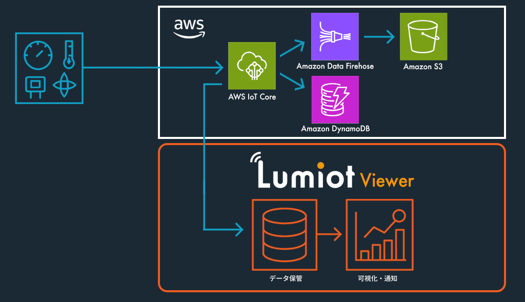 - AWS上のデータ保存期間:無期限(Lumiot Viewerは1年)