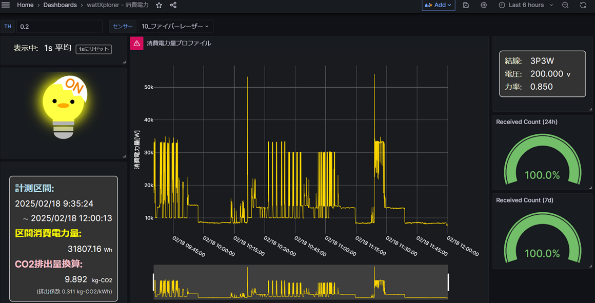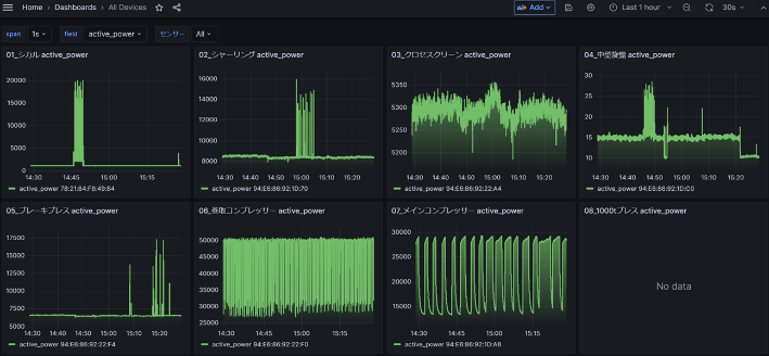 電力波形によって設備の動作開始時間と終了時間が見える化されたことで、稼働状況を一目で確認できるように なりました。さらに、期間ごとの稼働率も算出できるようになりました。