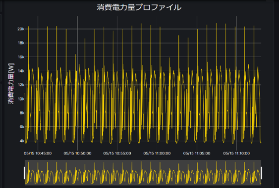 自身、完全な文系で全く電気の予備知識がないのですが、wattXplorerを設置して、初めに気づいたこと、それは、「衝撃」でした。これは、単なる測定器じゃないな、というか単なる測定器で終わらせたらもったいない機械だと思いました。理由は「1ショットごとの電気の動きが見える!」ということ、そしてそこから、正常時は均一な成型機の電流波形が出力されているが、この電流波形がブレたらどうなるのだろうか? もしそういうデータが取得出来るのであれば、異常検知が出来るのではないか?という考えがふと湧きあがりました。実際、それがきっかけで、成型機の夜間の電流ピーク値があがっていることに気が付きました。調査した結果、冬場の夜間は室内気温も下がるので温度調整用のヒーターが夜間頻繁に作動していることに気づきました。一つのデータでこの様に、いろいろなことが見えてきて、これは非常に面白いことだなと感動しました。本当に異常があった場合もわかるはず!ということで、和田社長のところに伺った際、こういう使い方の可能性がありますとお話しました。また、別の事例で、チェックリングの摩耗の検知がありました。この部品は摩耗しやすくて、摩耗してくると樹脂が抜けて逃げてしまいます。そうすると力がしっかりかからず、不良発生の原因となります。たまたま交換するタイミングがあったので、その交換前後で波形をよくよく見たら、波形の形状が変化していることがわかり、これ面白いな、とますますハマっていったというのが正直なところです。