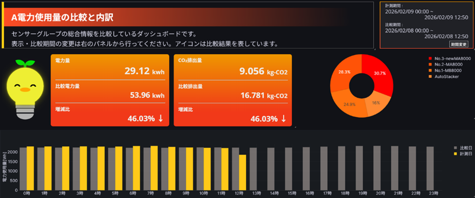 可視化されたデータによると、土日などの稼働停止日でも、コントローラや周辺機器が電力を消費し続けており、その額は「月に数万円レベル」に達することが判明しました。 「データとして突きつけられて初めて、『土日は主電源から完全にシャットダウンすべきだ。』という具体的な改善意欲が芽生えました。」と横道様は言います。これまでは「なんとなく消費しているだろう」と思っていた無駄が、金額という明確な指標になった瞬間でした。